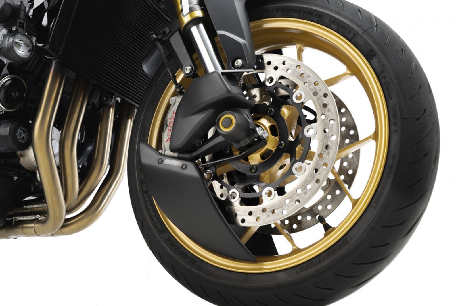 Jeho hlavní funkcí je snížit turbulence kolem předního kola, čímž poskytuje větší stabilitu a přesnost, zejména při vysokých rychlostech nebo náročných jízdních podmínkách. Díky tomuto efektu nabízí motocykl předvídatelnější ovládání a vyšší komfort jezdce.