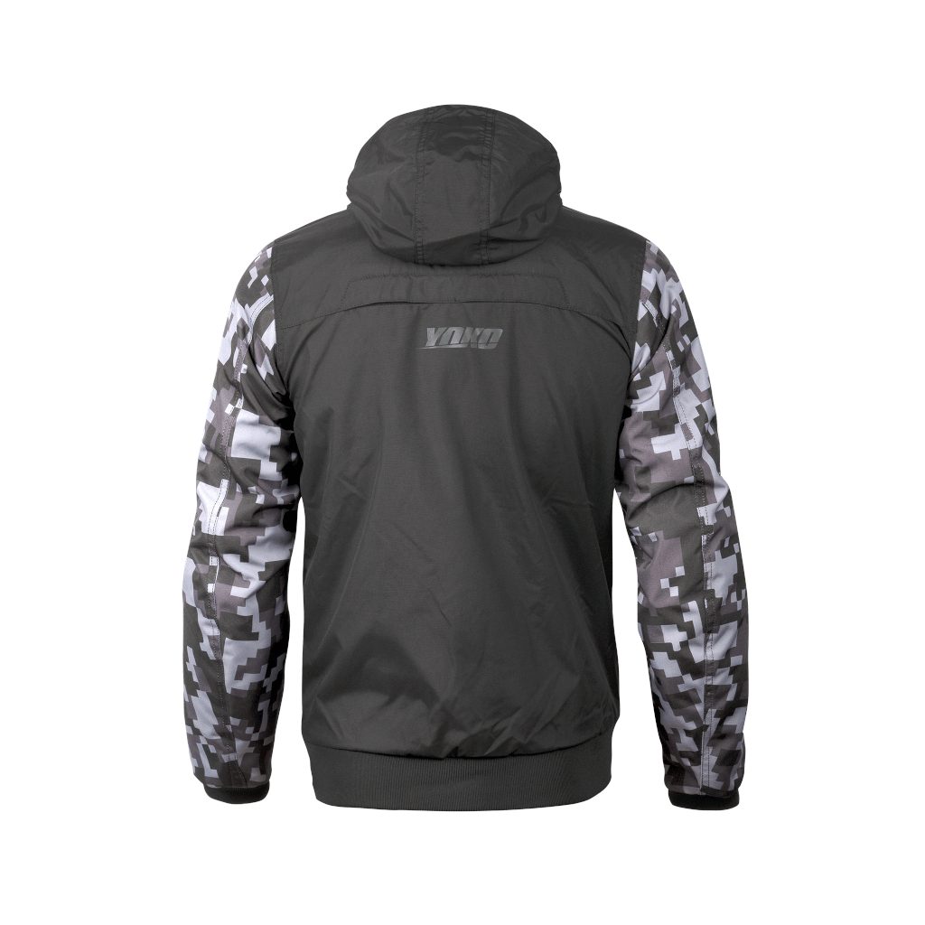 Moderní textilní bunda na motorku YOKO SKLODDI  s padnoucím střihem a stylovým designem. Je vyrobena z (CE) certifikovaného pohodlného a pevného materiálu Hydropol 600. Pohodlí zajišťuje prodyšná a voděodolná YZ podšívka, síťovaná podšívka, stálý větrací otvor na zádech a manžety zápěstí s nastavitelným suchým zipem a rozepínáním na zip. Bezpečnost zajišťují odepínatelné a (CE) certifikované loketní a ramenní chrániče. Díky dvěma velkým předním kapsám, klasické náprsní a voděodolné vnitřní náprsní kapse poskytuje bunda dostatečný a bezpečný prostor pro peněženku, klíče, telefon a další drobnosti. Zajímavostí této bundy je odepínací kapuca. Nejlépe se hodí ke kalhotám YOKO SKLODDI.