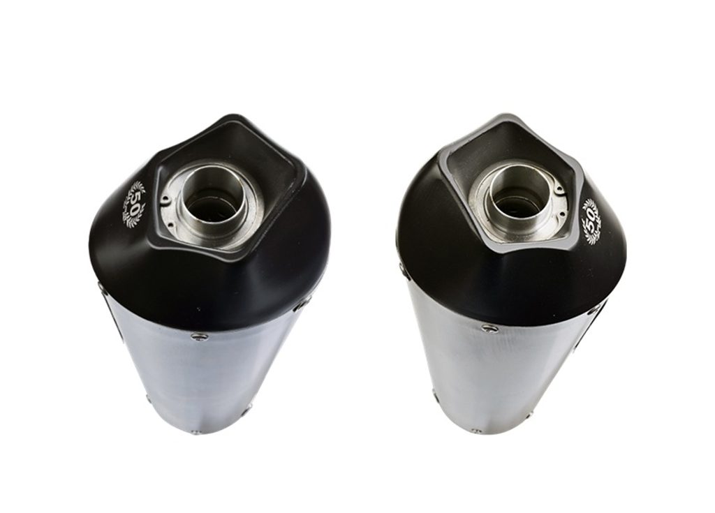Dvojitá koncovka výfuku Slip-on GPR NEW GRAND PRIX EVO TITANIUM E4.A.56.GPAN.TO Broušený titan zahrnuje odnímatelné dB killery a spojovací svody