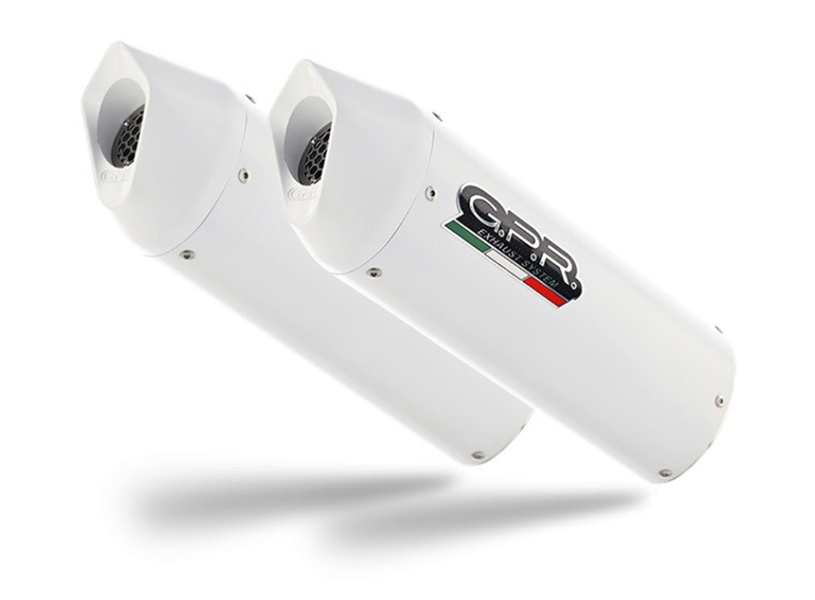 Dvojitá koncovka výfuku uchycená šrouby GPR ALBUS KTM.16.ALB Lesklá bílá zahrnuje odnímatelný dB killery