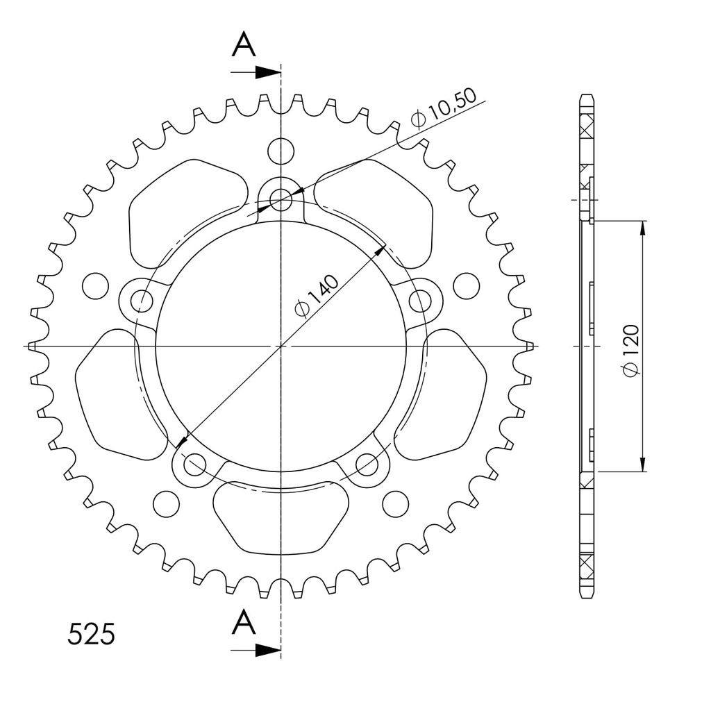 Hliníková řetězová rozeta SUPERSPROX RAL-1792:46-BLK černý 46 zubů, 525