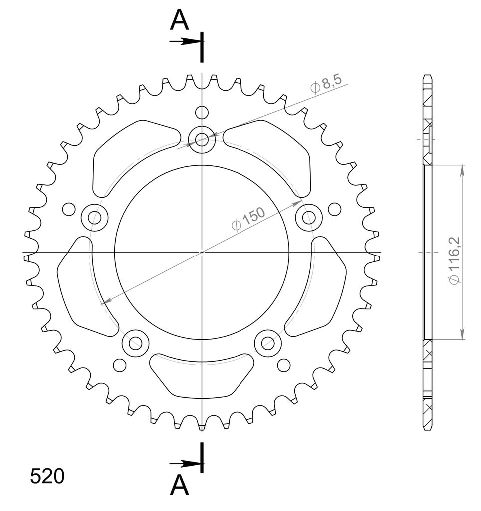 Hliníková řetězová rozeta SUPERSPROX RAL-28:45-BLK černý 45 zubů, 520