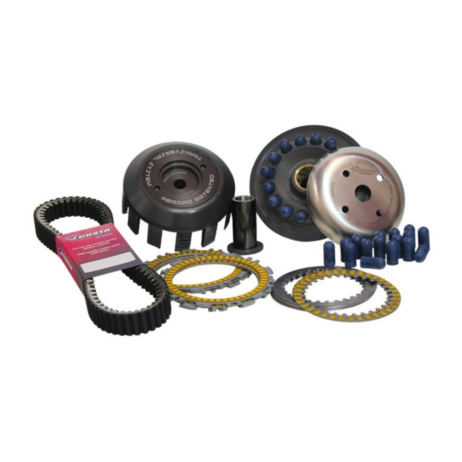 Spojka J.Costa díky svému příčnému designu, stejně jako variátor, vytváří přímější akceleraci s udržením motoru při uvolnění plynu. Sada spojkových lamel zajišťuje maximální výkon celé spojky, čímž získáte přibližně 3 koně navíc u kola při použití kompletní spojkové sady.