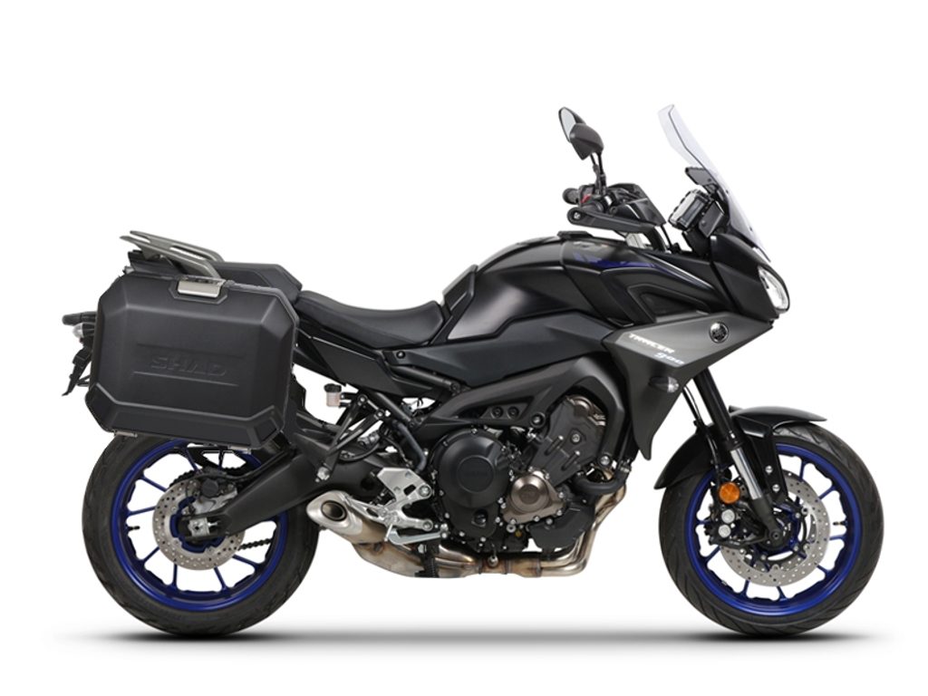 Kompletní sada bočních černých hliníkových kufrů SHAD TERRA BLACK 36L/36L, včetně montážní sady SHAD YAMAHA MT-09 Tracer / Tracer 900