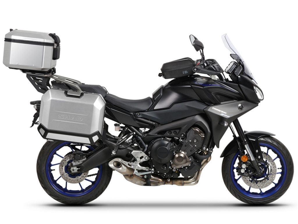 Kompletní sada černých hliníkových kufrů SHAD Terra obsahuje černý vrchní kufr TR48 s kapacitou 48L včetně plotny, levý černý hliníkový kufr TR47 s kapacitou 47L a pravý černý hliníkový kufr TR36 s kapacitou 36L kvůli umístění výfuku. Pravý kufr tak nebude vyčnívat. Sada obsahuje vše, co potřebujete k montáži obou kufrů.