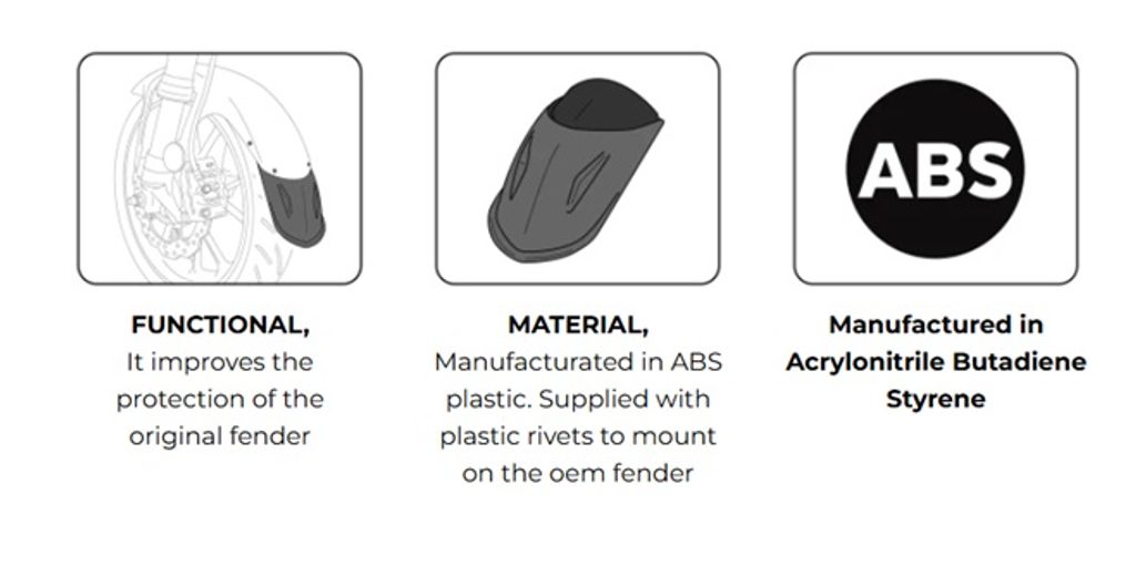 Zvyšte ochranu svého motocyklu pomocí prodloužení předního blatníku od značky PUIG. Prodloužení je vyrobeno z ABS materiálu, který je vysoce odolný proti nárazům, a představuje ideální ochranu proti nečistotám odlétajícím od předního kola, které by mohly zasáhnout kapotáž vašeho motocyklu nebo přímo vás. Prodloužení je dodáváno v černém provedení, aby ladilo s vzhledem vašeho stroje.