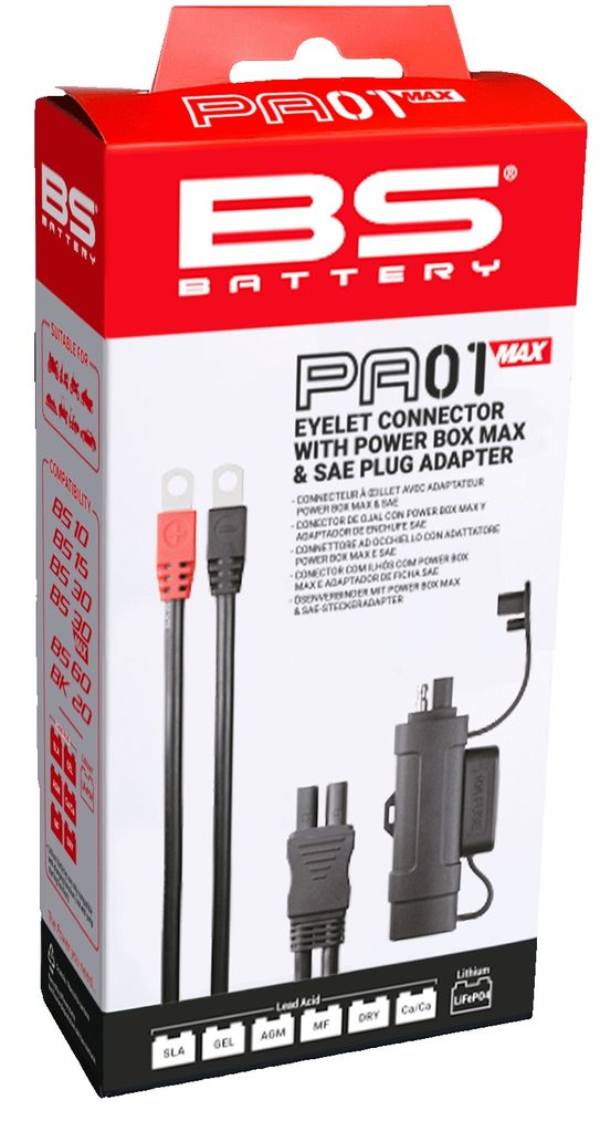 Tento konektor je ideálním řešením, pokud je baterie obtížně přístupná, skrytá nebo není možné použít startovací svorky. Nabízí rychlý a bezpečný způsob nabíjení baterie pomocí nabíječky nebo nouzového startu pomocí boosteru Power Box MAX, a to díky dvojitému připojení: SAE konektoru a speciálnímu konektoru Power Box MAX.