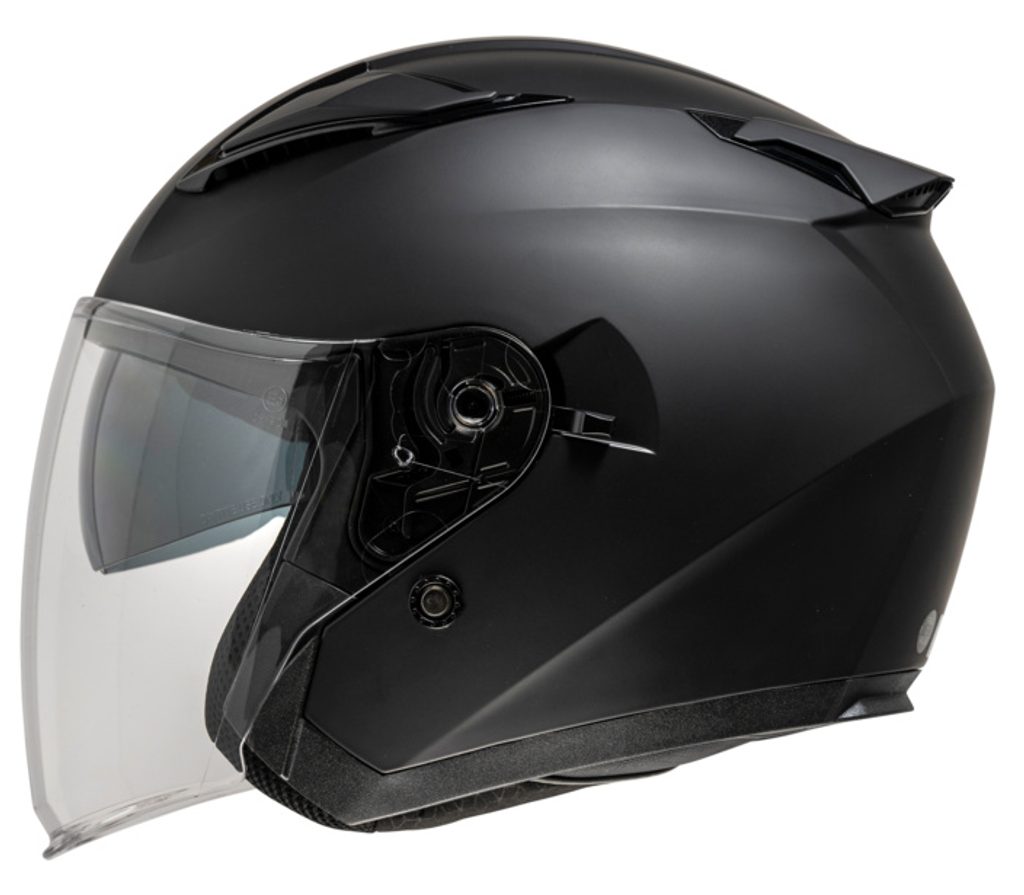 Otevřená JET přilba z polykarbonátu s dlouhým hledím.