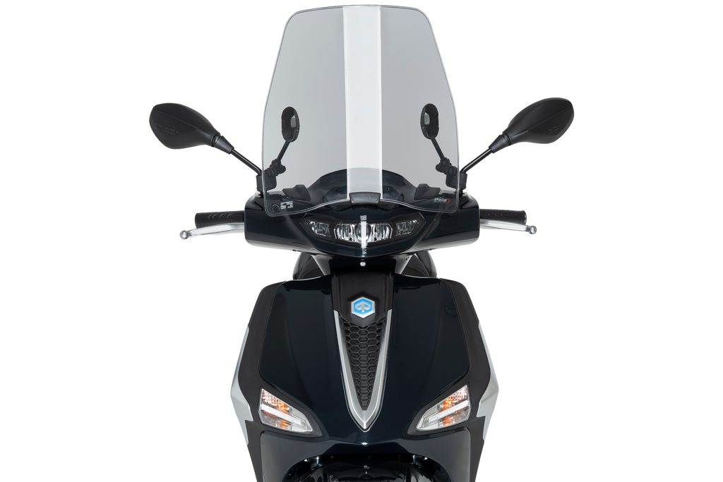 Tento nový štít od Puigkosmopolitní design, vyvinutý speciálně pro městské použití, a poskytuje ochranu proti větru a nepříznivému počasí při současném zlepšení aerodynamických vlastností.