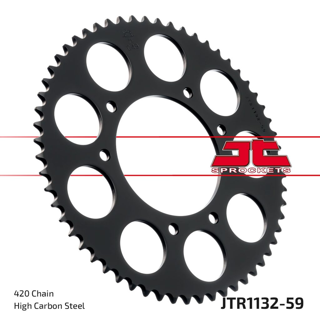 JT rozety jsou vyráběny z prvotřídní vysokopevnostní uhlíkové oceli C49. Sortiment ocelových rozet JT aktuálně čítá více než 2 500 dílů pro motocykly a čtyřkolky všech značek.