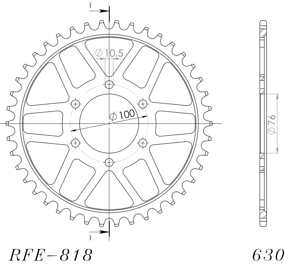 Řetězová rozeta SUPERSPROX RFE-818:42-BLK černý 42 zubů, 630