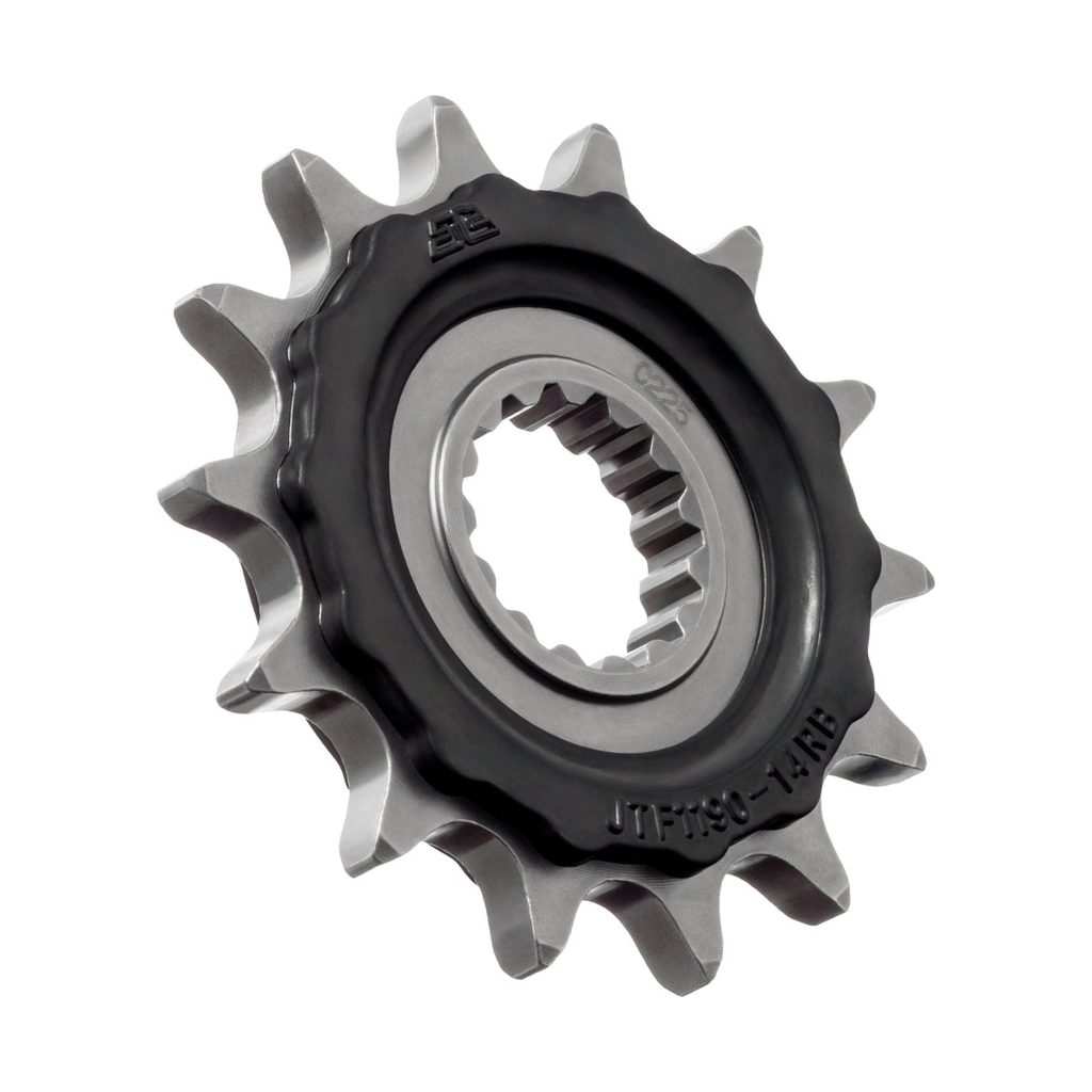 JT řetězová kolečka s gumovým tlumičem nabízejí stejnou kvalitu, konstrukci a technologii ověřenou výrobci japonských motocyklů už od počátku 90. let. Pryžové vložky pomáhají tlumit nárazy řetězu a zvyšují komfort i životnost pohonu.