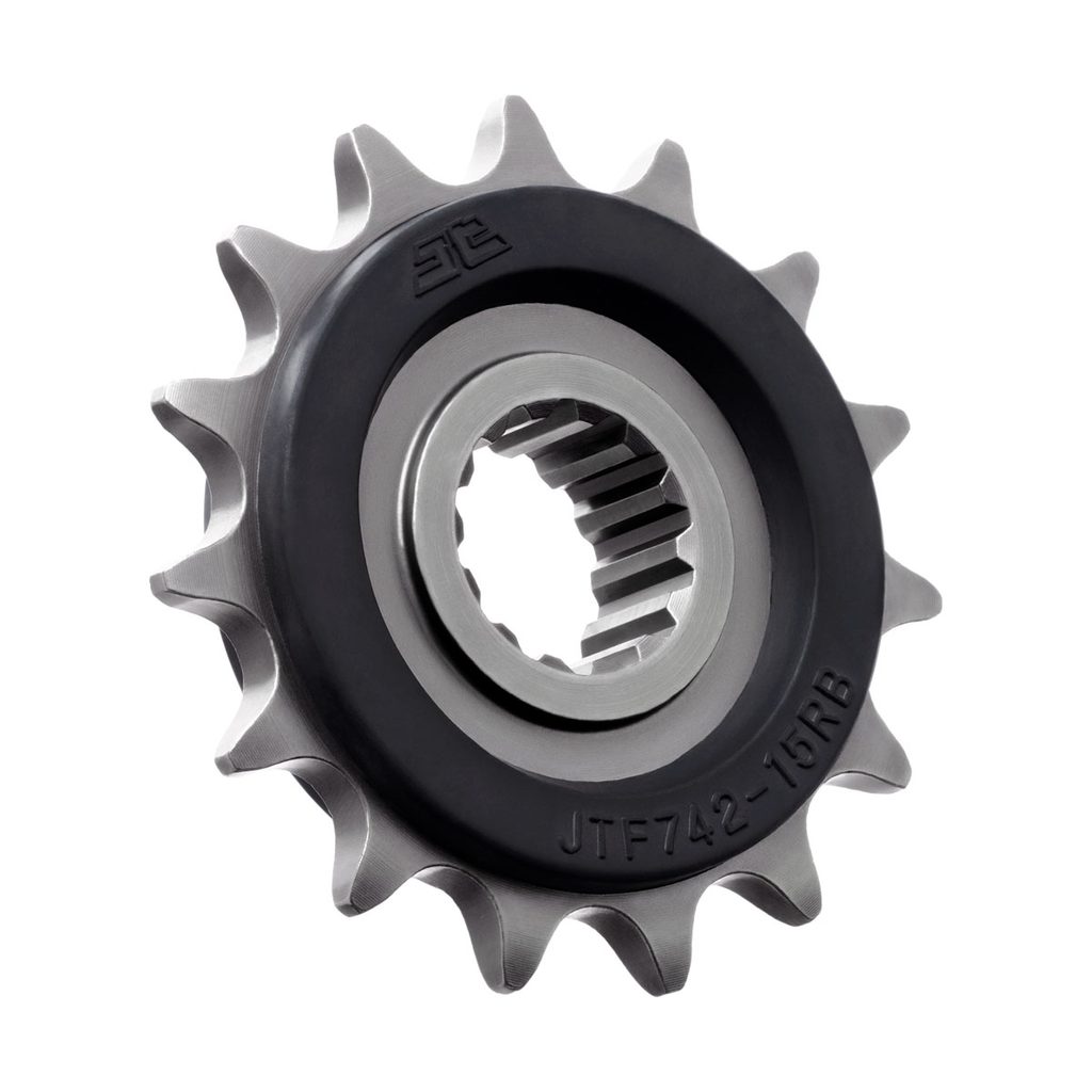 JT řetězová kolečka s gumovým tlumičem nabízejí stejnou kvalitu, konstrukci a technologii ověřenou výrobci japonských motocyklů už od počátku 90. let. Pryžové vložky pomáhají tlumit nárazy řetězu a zvyšují komfort i životnost pohonu.