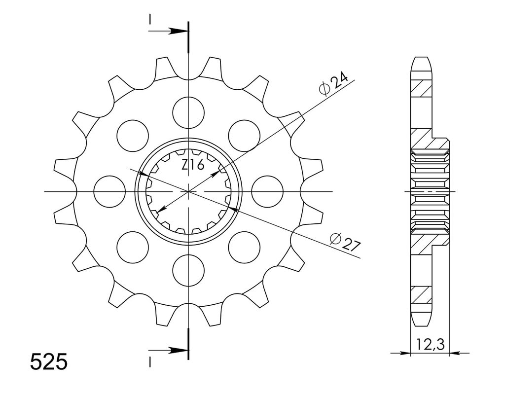 Pevnější zuby = vyšší životnost řetězové sady až o 10%. Kolečko 16z, řetěz 525. Více informací