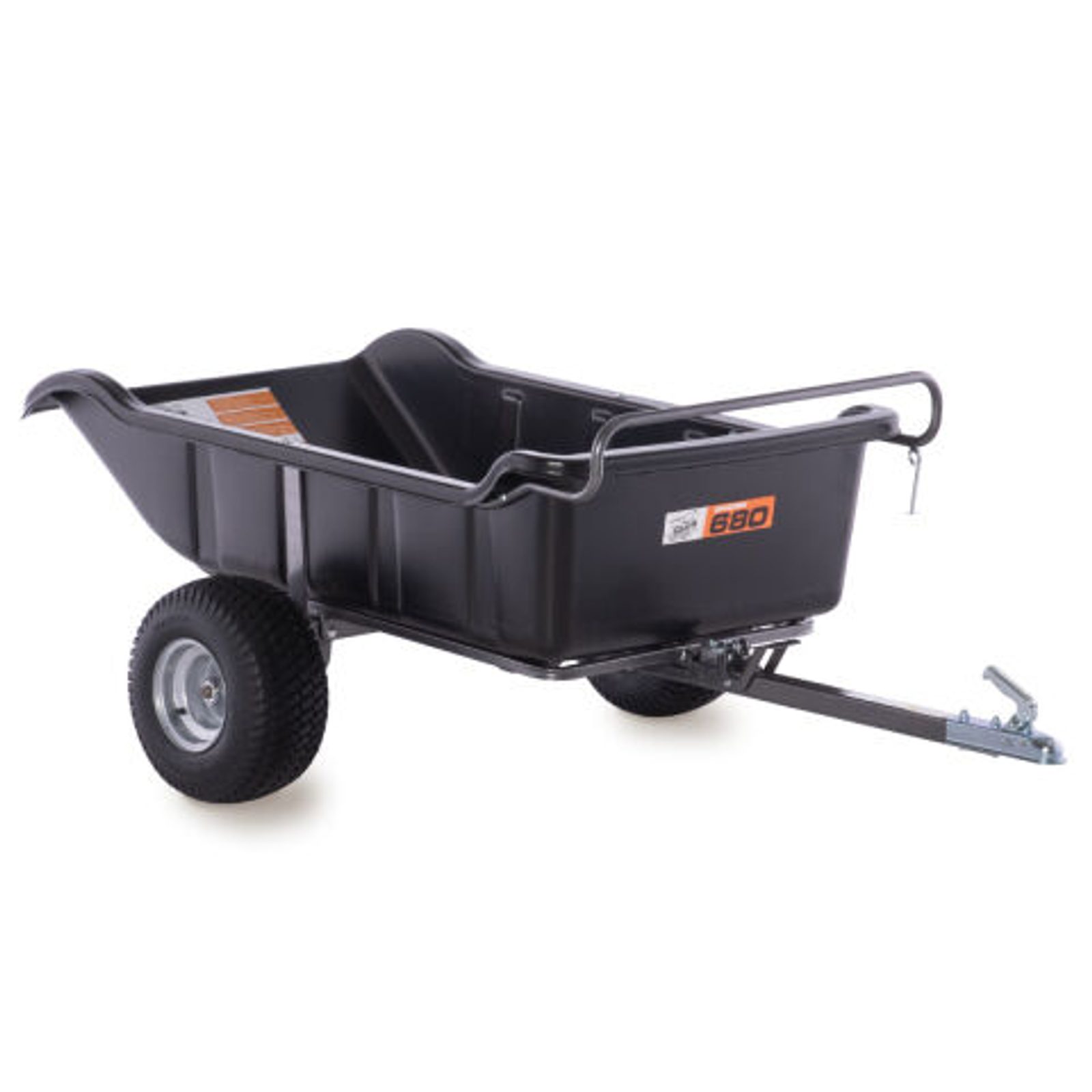 Praktický lehký sklápěcí ATV vozík s velkou plastovou korbou.