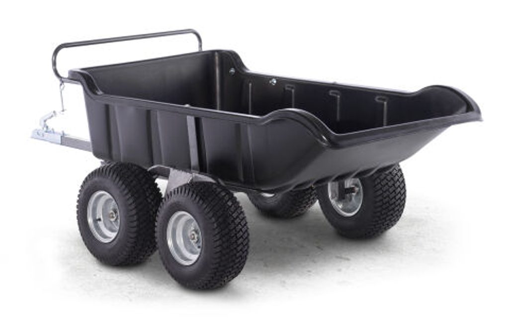 Robustní dvounápravový vozík s výkyvně uloženými nápravami a velkou sklápěcí korbou je ideální pro svoz dřeva, převážení stavebního materiálu, písku, zeminy, zahradního odpadu, mulče a prakticky všeho kolem zahrady, stavby, sadu nebo farmy. Výkyvné nápravy se mohou otáčet nezávisle na sobě, výsledkem je plynulejší jízda s nákladem oproti dvoukolovým vozíkům díky výrazně menšímu bočnímu výkyvu vozíku. Čtyři kola dávají vozíku vynikající terénní prostupnost a stabilnější a šetrnější jízdu. Díky odolné sklopné korbě se šikmým zadním čelem snadno a rychle složíte každý náklad kdekoli potřebujete. Velká kola se širokými nízkotlakými pneumatikami jsou velmi šetrná k trávníku.