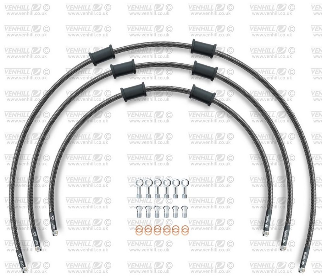 STANDARD Hadice přední brzdy sada Venhill POWERHOSEPLUS YAM-8001F-CB (3 hadice v sadě) karbonové hadice, chromové koncovky