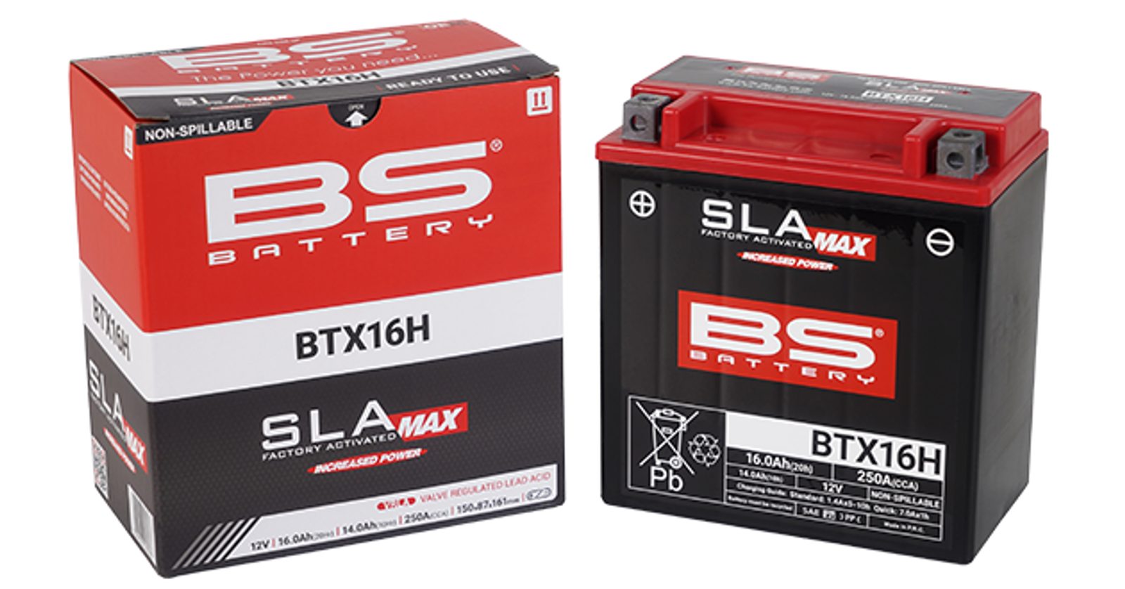 Baterie BTX16H je součástí naší řady SLA Max. Navržena pro ty nejnáročnější podmínky, tato baterie 12 V / 16 Ah poskytuje maximální výkon pro motocykly s velkými motory vybavené elektronickým příslušenstvím (GPS, alarm, audio, svítilny…).