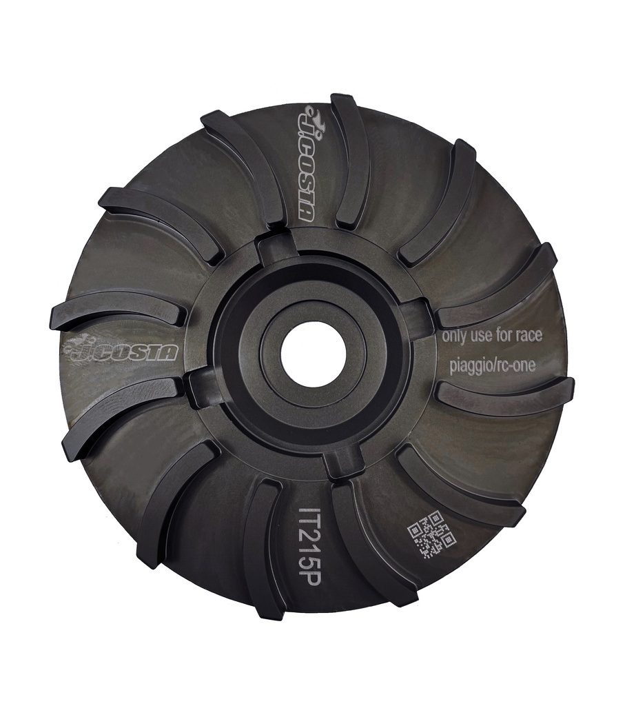 Polovina řemenice J.Costa pro variátor, určená pro motory o objemu 50, 70 a 100 ccm se základem Piaggio. Kompatibilní s kartery MHR C-One, RC-One a Ottopunto.
