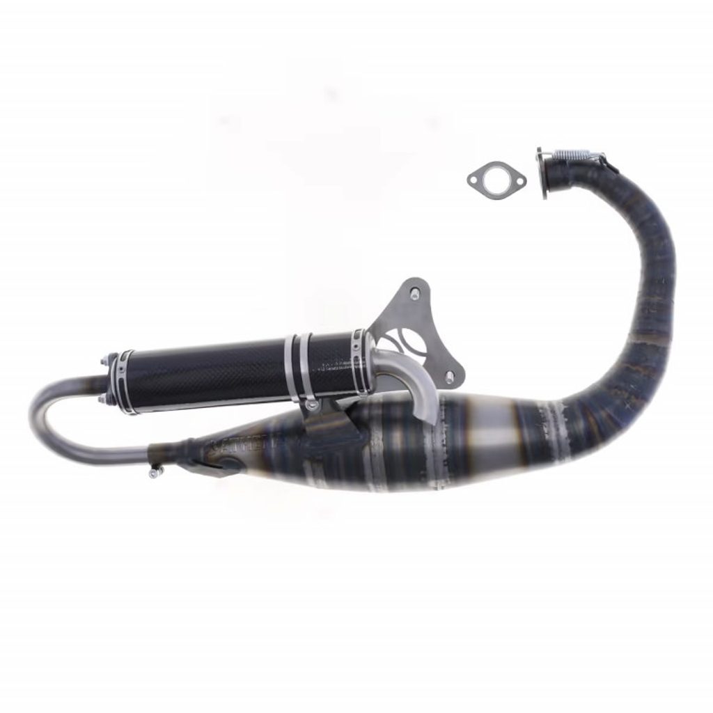 Design je unikátní – tento závodní výfuk pro Booster je vyroben z vysoce kvalitní oceli o tloušťce 0,8 mm, která zajišťuje maximální výkon na jakémkoli modelu skútru.