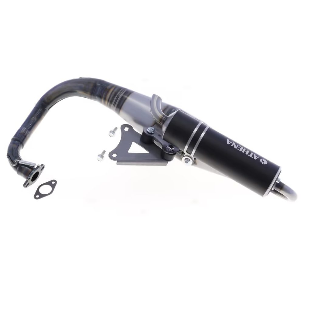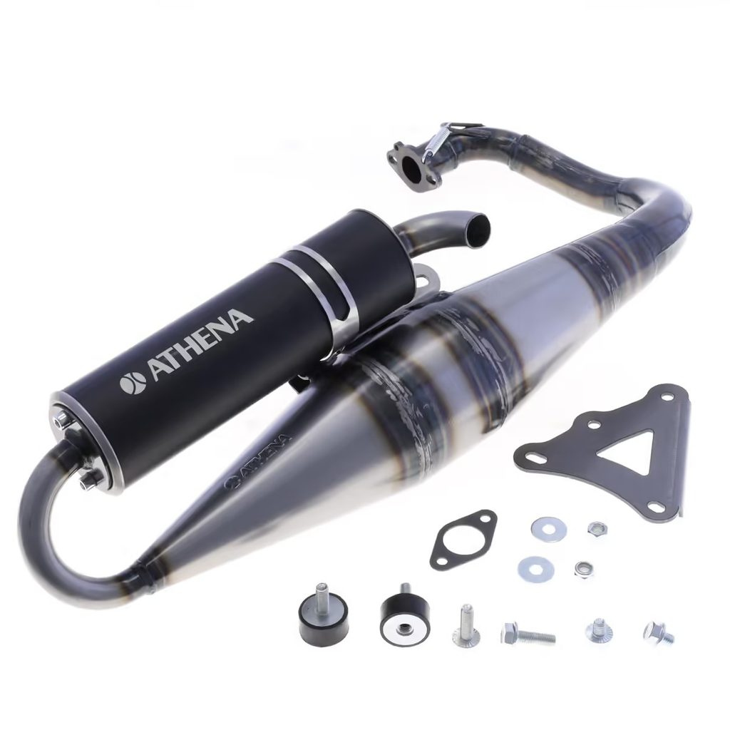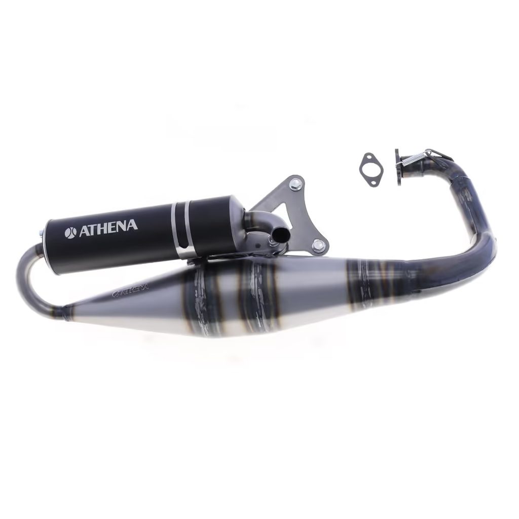 Vylepšete svůj skútr novým závodním výfukem Athena, navrženým pro optimální výkon motorů Minarelli Horizontal 50 ccm a válcových sad 70 ccm. Díky modernizovanému designu a technickým vylepšením je tento výfuk ideálním řešením pro jezdce, kteří hledají kvalitní upgrade za konkurenceschopnou cenu.